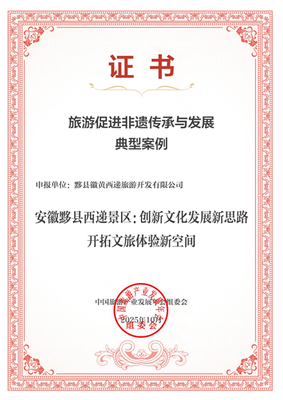 10月16 日-17日,第十二届中国旅游产业发展年会在辽宁沈阳举办,西递景区报送的《创新文化发展新思路 开拓文旅体验新空间》案例成功入选 “2025旅游促进非遗传承与发展典型案例”,徽黄西旅公司作为获奖单位受邀参会。