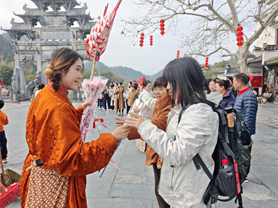 服务提升方面。本周新入职员工已陆续到岗,西旅公司导游部按照培训计划组织开展新员工导游词专题培训,进一步强化业务技能,促进新员工尽快融入工作岗位。 活动开展方面。为传承弘扬雷锋精神,践行“奉献、友爱、互助、进步”的志愿服务精神,3月5日,在第63个学雷锋纪念日来临之际,西递景区组织开展“学雷锋”志愿服务活动,在岗党员、青年团员志愿者10余人参加活动。 为强化全员宣传意识,提升宣传视频拍摄质量,助力景区自媒体品牌宣传,3月7日下午,西递景区特邀请徽黄集团企业文化部副总监、新华社签约摄影师汪澄为员工开展手机短视频拍摄专题培训,30余名员工参加培训。 3月8日,第116个国际妇女节来临之际,为表达对女性的敬意,西递景区开展“古村花影·共绘春日浪漫”主题活动,以花为媒,向广大女性传递节日祝福。 旅游接待方面。本周以来,天气晴好、春光宜人,西递景区油菜花与梅花相互辉映,踏青出游人数稳步攀升,文旅市场持续升温,处处洋溢着春日生机与热闹气息。