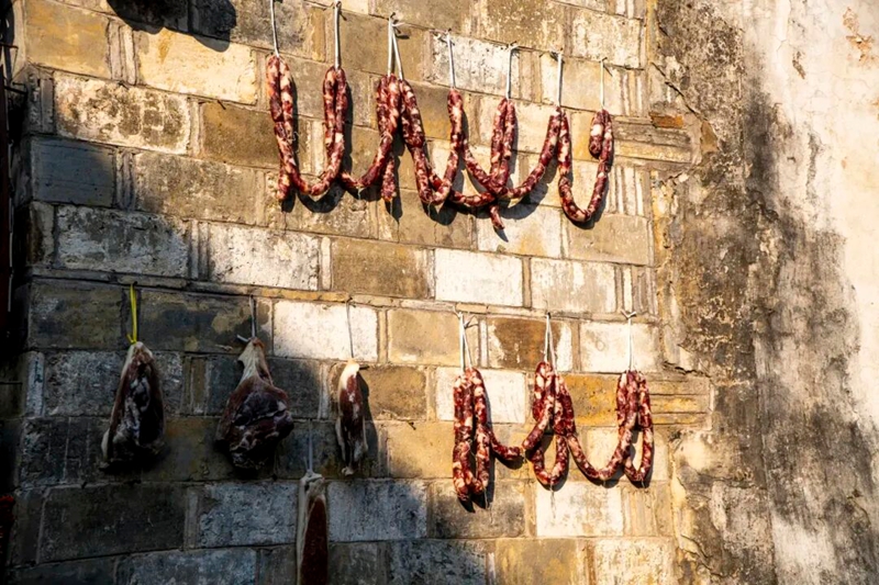 墙上挂着的腊肠、腊肉